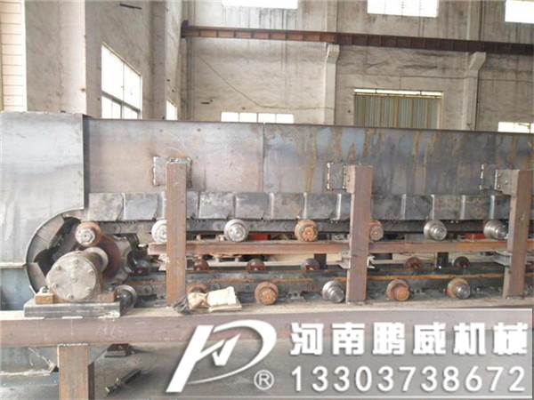 鏈板采用多組托輪支承,使鏈板的支承點多,使每塊鏈板成為超靜定梁,受力好,變形小,而且托輪內置軸承,使設備運行的阻力小。