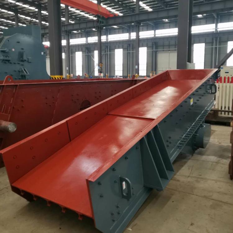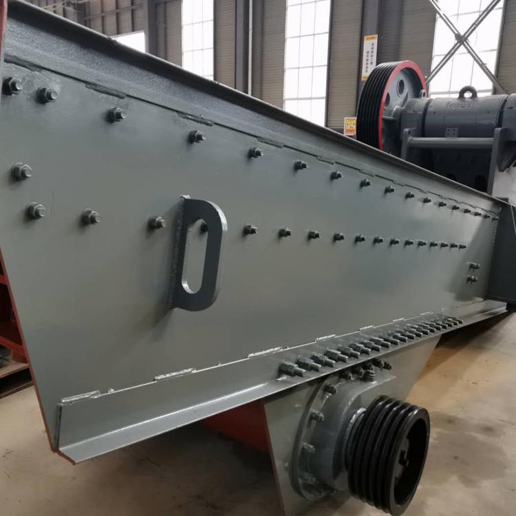 振動給料機主要由振動機架、振動電動機、彈簧、支承座及耐磨襯板等組成。是利用振動器中的偏心塊旋轉產生離心力,使篩廂、振動器等可動部分作強制的連續的圓或近似圓的運動。振動給料機是由給料槽體、激振器、彈簧支座、傳動裝置等組成。槽體振動給料的振動源是激振器,激振器是由兩根偏心軸(主、被動)和齒輪副組成,由電動機通過三角帶驅動主動軸,再由主動軸上齒輪嚙合被動軸轉動,主、被動軸同時反向旋轉,使槽體振動,使物料連續不斷流動,達到輸送物料的目的。振動給料機用于生產線中,可以均勻、定時、連續地將各種物料投入受料裝置中,保證生產的連續性,同時也避免了不合理給料造成設備堵料、損壞等狀況。振動給料機采用模塊化設計,易損件之間可以通用互換,節省整機運營成本,實現低投入高收益。振動給料機是按照重工工況設計的槽體,整機抗沖擊力強,振動平穩,磨損小,使用壽命長。振動給料機的結構簡單,給料槽為鋼板、支撐梁、筋板等組成的焊接結構,兩端焊有四個托架支撐在彈簧支架上,重量輕、體積小,便于操作、維修和保養。振動給料機的振動源為電機,噪音低、能耗少,調節性能佳,無沖料現象,整個生產過程節能環保符合國家環保要求。