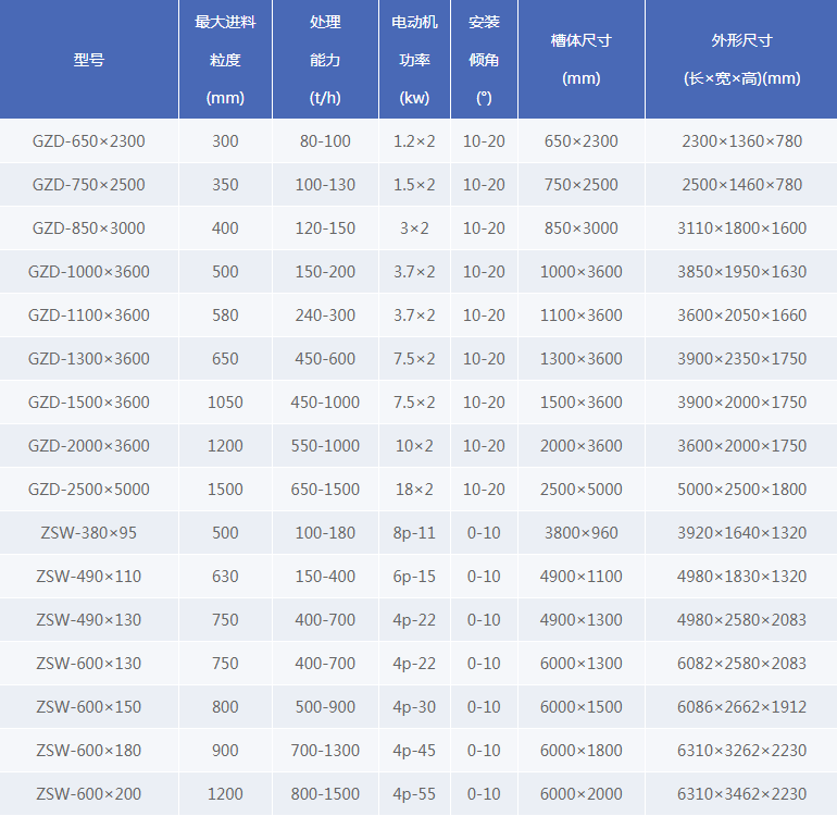 產品配置在初級破碎設備之前,在連續均勻主送大塊物料的同時,除去物料中的泥土,雜質,控制給料量,使之與之后續破碎,篩分生產線的處理能力相匹配,是成套生產線上的必備設備,具有結構合理,抗沖擊,耐磨損等特點。