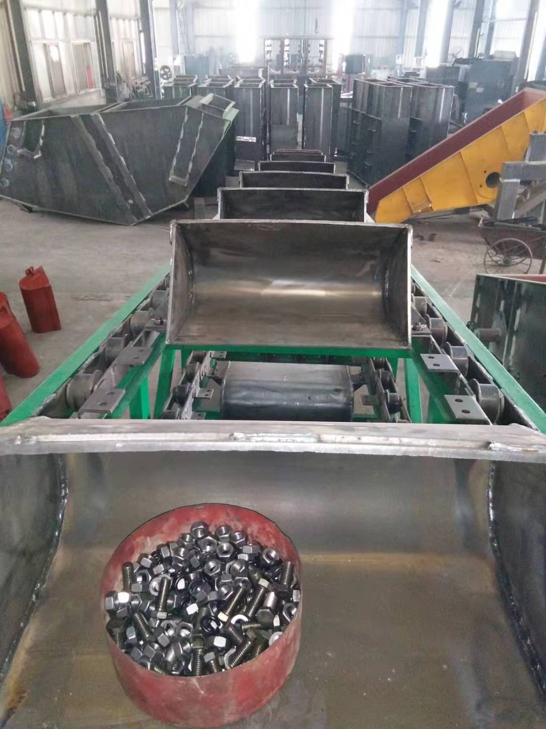 鏈斗輸送機(jī)的料斗寬度分別有350mm、450mm、630mm、800mm、 1000mm五個(gè)規(guī)格,根據(jù)不同的運(yùn)行場(chǎng)合及環(huán)境要求,鏈斗輸送機(jī)分敞開型、半封閉型和全封閉型三種形式。用戶可根據(jù)附表中的參數(shù)選擇機(jī)型,并提出具體的布置形式及尺寸、輸送產(chǎn)量、物料參數(shù)和其他要求。該機(jī)適用于各種粉狀、塊狀散裝物料的水平或傾角≤60°的輸送,特別適宜一些溫度高、容量大、塊頭大、具有鋒利棱角和磨琢性強(qiáng)的固體物料的輸送。鏈斗式輸送機(jī)(鏈斗輸送機(jī))產(chǎn)品廣泛應(yīng)用于電站、礦山、煤炭等行業(yè)的,進(jìn)行各種松散物料的輸送;如:鍋爐灰渣、水泥熟料、礦渣、焦炭、碎石等,特別是一些溫度高、容重大、塊度大、具有鋒利銳角和磨琢性強(qiáng)的物料。
