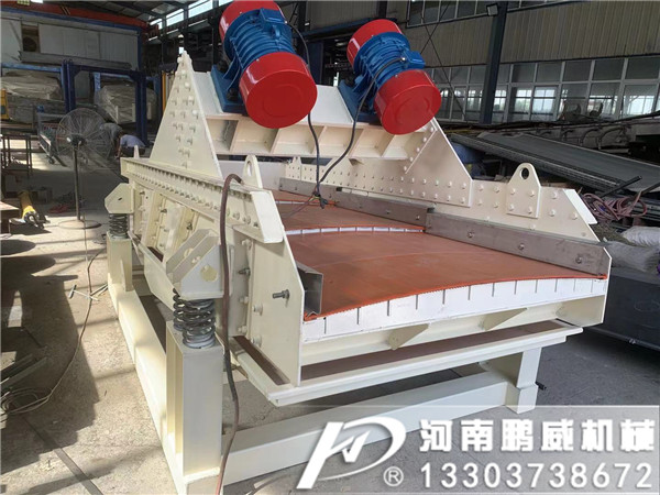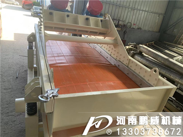 給礦器把礦漿均勻地灑在篩面上端。篩面上的物料由于連續受到高頻率小振幅的振動,在傾斜的篩面上做作連續的跳躍,使物料分散,細粒物料在調勻的過程中透過篩孔稱為篩下產品,而大于篩孔的物料在傾斜的篩面上作連續的向前跳躍,跳出篩網成為篩上產品。但是作用于不同物料時,脫水篩的構造還是有所不同的,比如水洗砂生產線上的砂石脫水篩和選礦廠常用的尾礦脫水篩就是不同的設備。高頻振動篩的振動器運用了共振原理,雙質體臨界共振狀態工作,所需驅動功率小,在啟動時無大的啟動電流,噪聲低。高頻振動篩篩框采用橡膠彈簧懸掛支撐,噪音低,功耗小,設備動負荷小,故對安裝基礎無特殊要求。高頻振動篩在篩體振動的同時,篩片的篩條之間也產生相對的顫動,篩片縫隙不易堵。